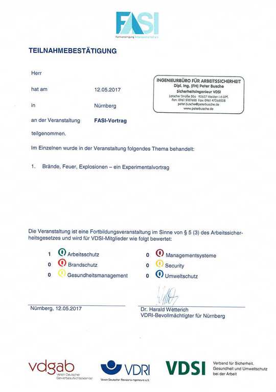 Ausbildung als Sicherheitsingenieur bei der BG Chemie für den Wirtschaftsbereich der BG RCI sowie bei der BG HM für den Wirtschaftsbereich Metall und bei